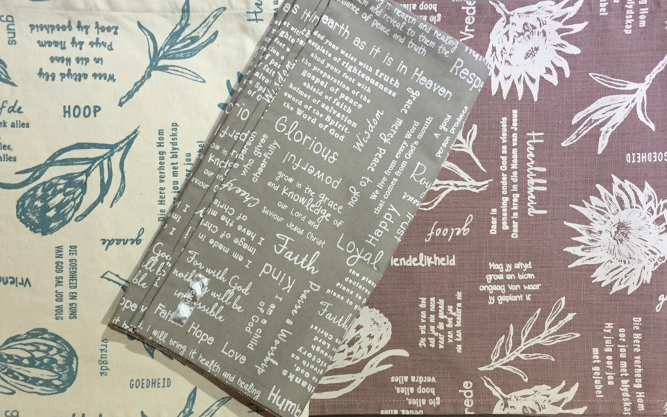 I do handprinted silkscreen fabrics from my various dsesigns. Final products include: Interior: bed linen, aprons, tablecloths and table runners. Baby accessories: receiver blankets, printed babygrows and more.