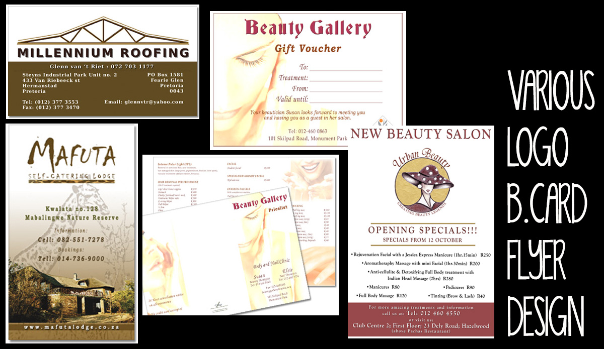 Different design jobs: Wedding stationary, logo design, business card design, flyers, brochure design etc.